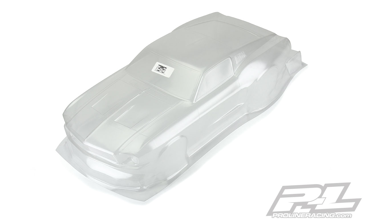This is a 1967 Ford Mustang Clear Body for Drag Racing. Ford fans, your time has come! Pro-Line is proud to introduce the iconic 1967 Mustang clear body to the no prep drag racing scene. The front end features a massively inset grill and headlights just like the full-size muscle car, which is only made possible with Pro-Line’s proprietary molding technology. This Mustang body has been faithfully recreated in 1/10 scale size and tuned specifically for drag racing. The body comes clear giving you the option to paint the body however you desire. Pro-Line even includes a drag-style rear wing to keep you going straight down the track. If you are a Mustang fan, then this is a must-have body for your drag car.