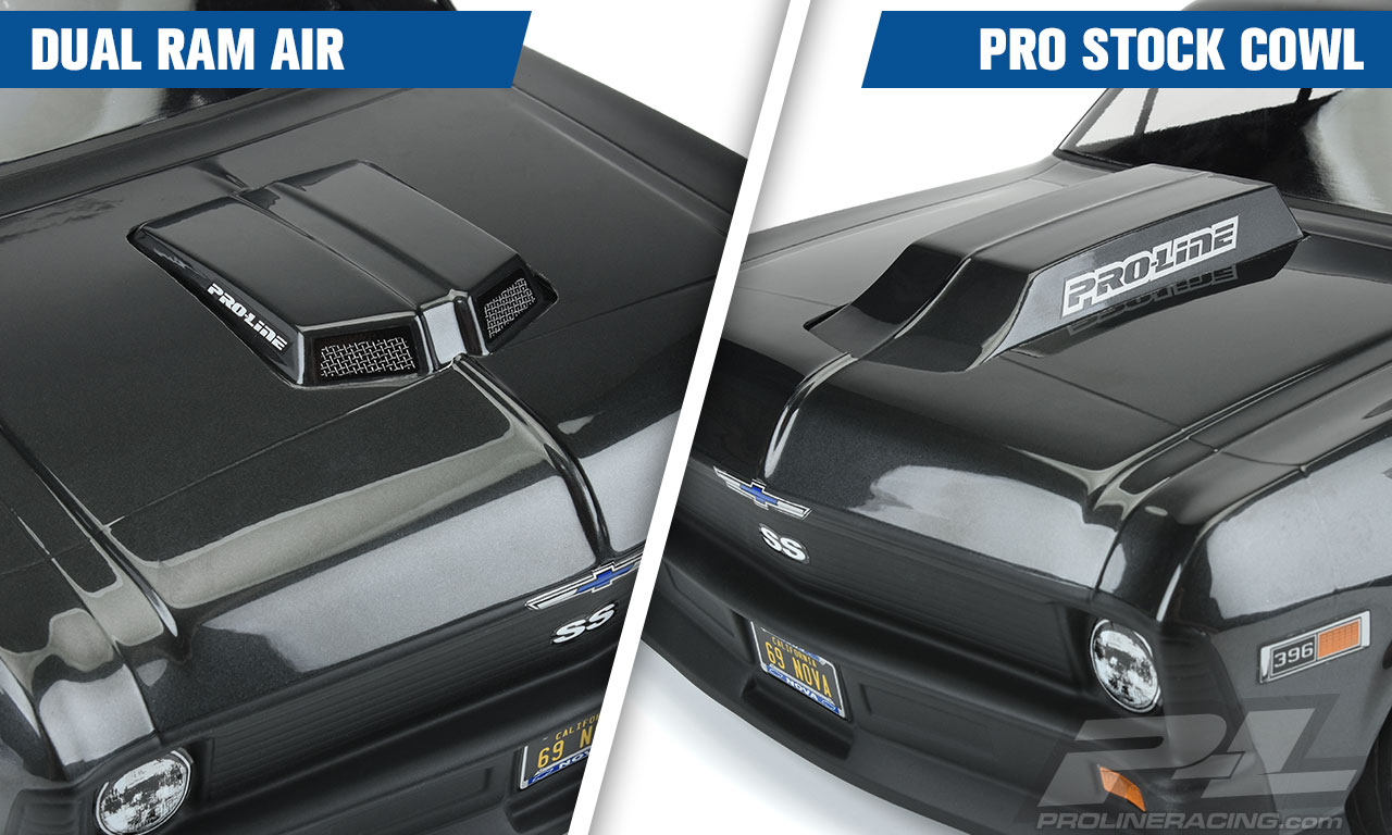 The pack includes a two-piece scale intake and blower that will transform your car into full-on American Muscle. The included Pro Stock and Pro Mod style hood scoops and cowls are perfect for recreating a more serious drag racer look. Pro-Line even includes scale Naca ducts that can be placed in the windows or anywhere you want for an incredibly unique and ultra-scale appearance. These scale accessories are perfect for many of Pro-Line’s popular Drag bodies but can be made to fit almost any 1:10 or 1:8 scale bodies.