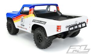Are you looking for an iconic race truck body for your short course ride? Well, Pro-Line now has the ultimate licensed Dodge body – the 1984 Ram 1500 Race Truck. This classic fleet side Pro-Line 1984 Dodge Ram 1500 clear truck body features large, full race fenders and iconic styling that will separate your truck from the rest. This popular well-known truck body style dominated the desert racing scene in the mid to late 80’s and was driven by off-road legend Walker Evans making it the ultimate dream truck to many race fans. The body includes fully licensed Dodge grill, headlight and taillight decals to complete the look. Give your Short Course Truck the tough look it deserves with Pro-Line’s new 1984 Ram 1500 Race Truck body.