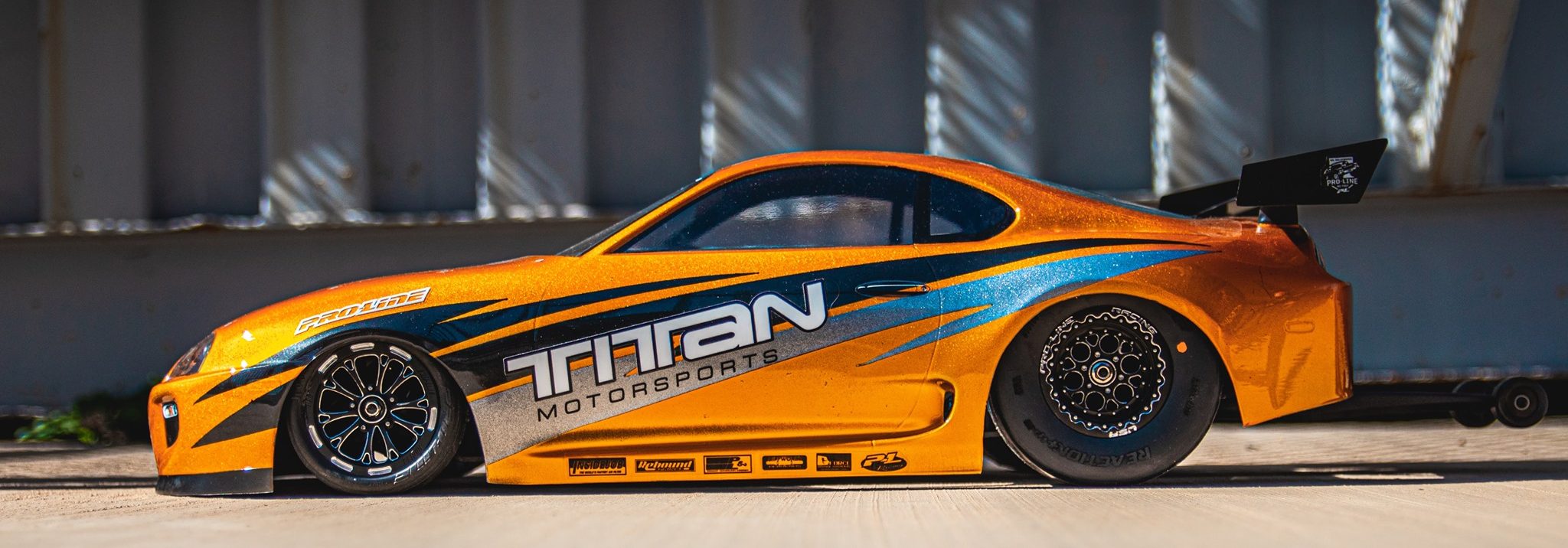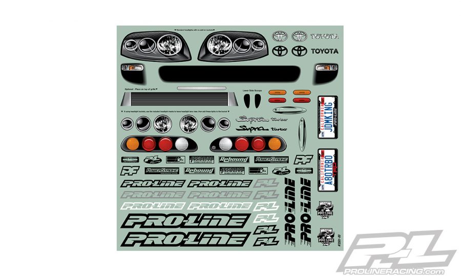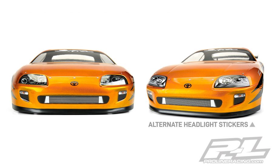 Pro-Line pays homage to one of the 90’s most popular sport cars with its new body. The 1995 Toyota Supra clear body is ideal for the no prep drag racing scene. All the iconic rounded shapes of the full-size car have been faithfully recreated in 1/10-scale size and tuned specifically for drag racing. Pro-Line even includes separate headlight buckets to accurately replicate the 3-dimensional depth of the 1995 Supra headlights. The body features a unique tuner-style raised rear wing that is lifted by the included molded black plastic wing struts to complete the iconic Supra styling. Or you can 3D print your own OEM style Supra Spoiler using the design file provided by Pro-Line.