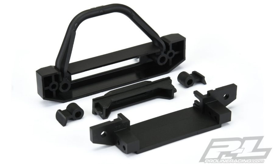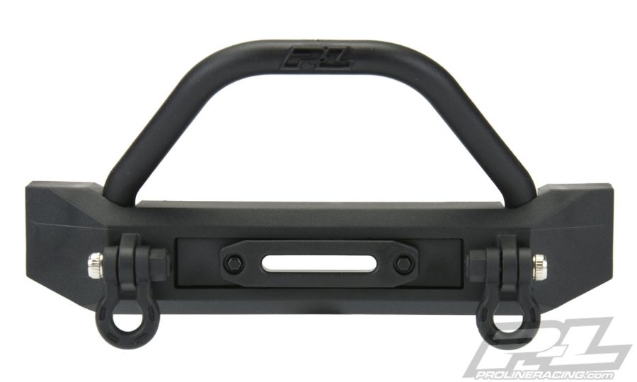 Pro-Line designed the Ridge-Line bumper to achieve the highest front bumper clearance that is possible while still maintaining a realistic look. It has a small compact design that is only 4-inches wide and features D-Ring shackles attached on either side of the winch fairlead opening. You are able to directly bolt it right up to either the Axial SCX10, Traxxas TRX-4 and Vaterra Ascender rock crawlers for a no fuss installation. If you are handy, you can very likely make this Pro-Line bumper fit your 4X4.