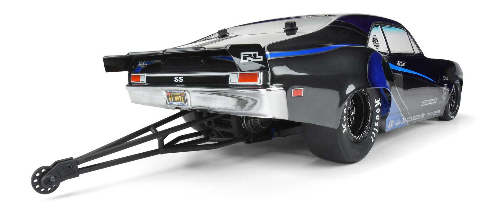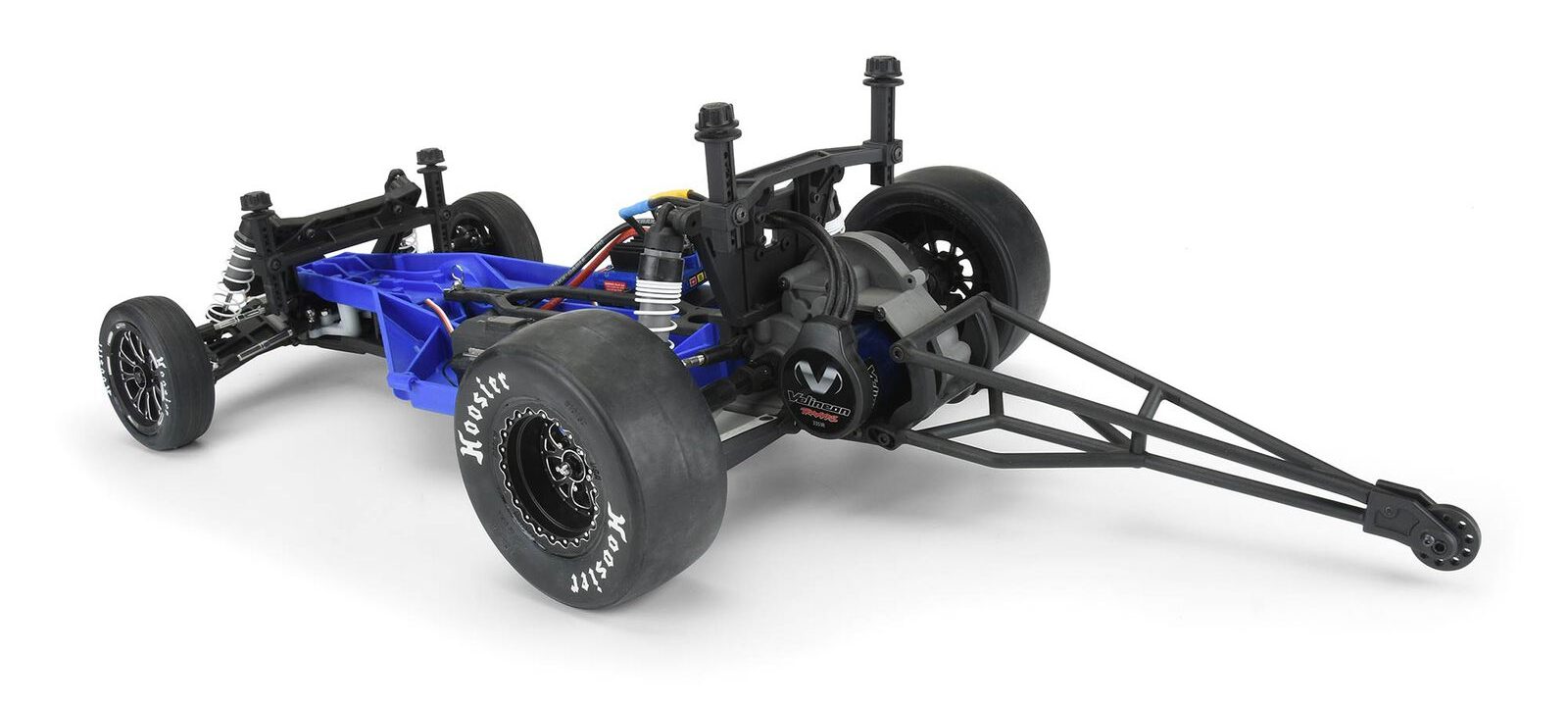 The latest and most popular segment in RC are the no-prep drag cars that people are buying and customizing. A drag body alone is not enough to complete the look or provide all the necessary performance for a true drag car. Pro-Line comes to the rescue with this Stinger Drag Racing Wheelie Bar. It is molded out of stiff and durable black Nylon and resembles full-size steel wheelie bars for the ultimate look and performance. The lightweight design with single ball bearing supported wheel will assist your drag car to hold is line down the course. Pro-Line made sure that it would be adjustable so that you can tweak the height and dial in your car. It comes with a spare wheel and is designed to easily install onto a Traxxas Slash 2WD short course truck.