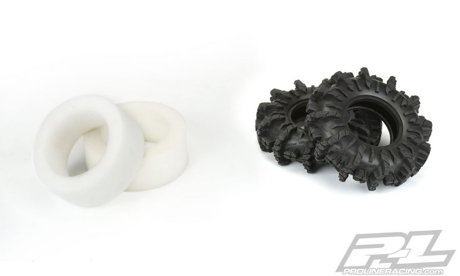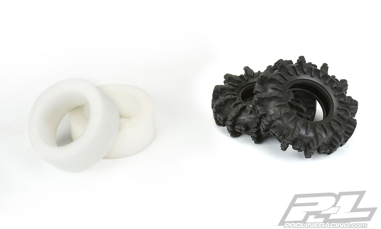Pro-Line is proud to announce fully licensed Interco Black Mamba 2.6″ tires specifically designed for extreme mud truck action. These massive 6″ tall x 1.86″ wide tires are perfect if you are looking to do some Mud Bogging with your rig. Transform your Black Mamba tires into an even narrower and more extreme mud tire when you combine them with Pro-Line’s Vice CrushLock 2.6″ Bead-Loc wheels (2789-03) shown below.