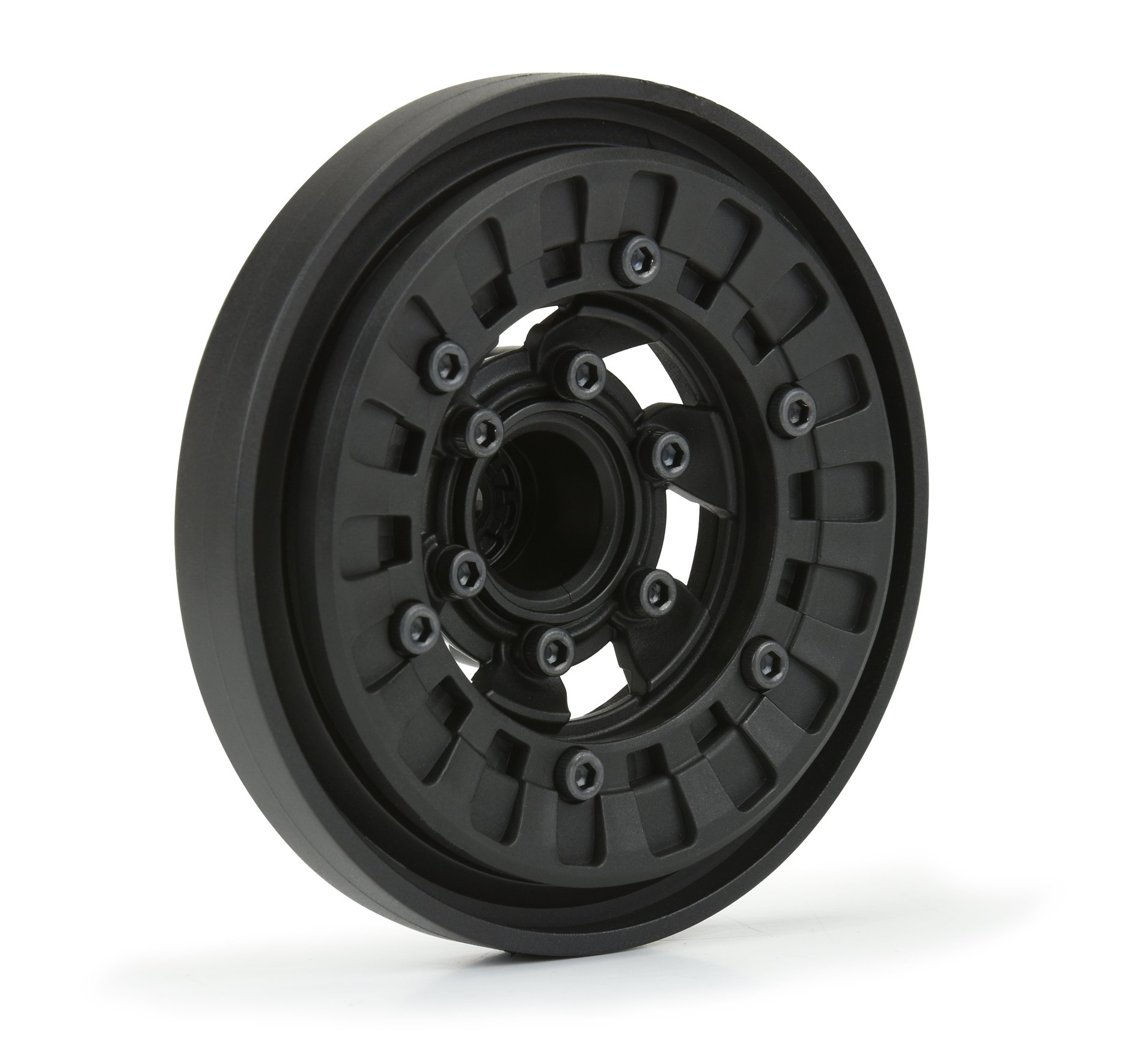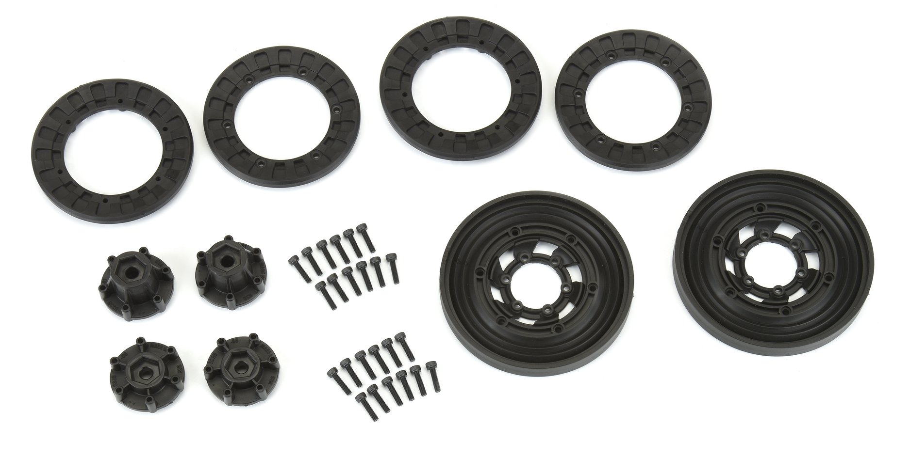 Pro-Line is taking mud trucking to the extreme with the all-new Vice CrushLock 2.6″ black wheels. These wheels literally crush the tire beads together and narrow up 2.6″ tires for extreme mud performance. CrushLock style wheels are a popular wheel upgrade in full-size mudding and now you can have the same thing in a smaller scale. These wheels pair perfectly with Pro-Line’s licensed Interco Black Mamba 2.6″ Mud Tires (shown above) for the ultimate in mud flinging performance. The Vice CrushLock wheels include Pro-Line’s innovative 6×30 Removable Hex system allowing for multiple hex size and offset options (sold separately) with narrow and wide 12mm hexes included as standard.