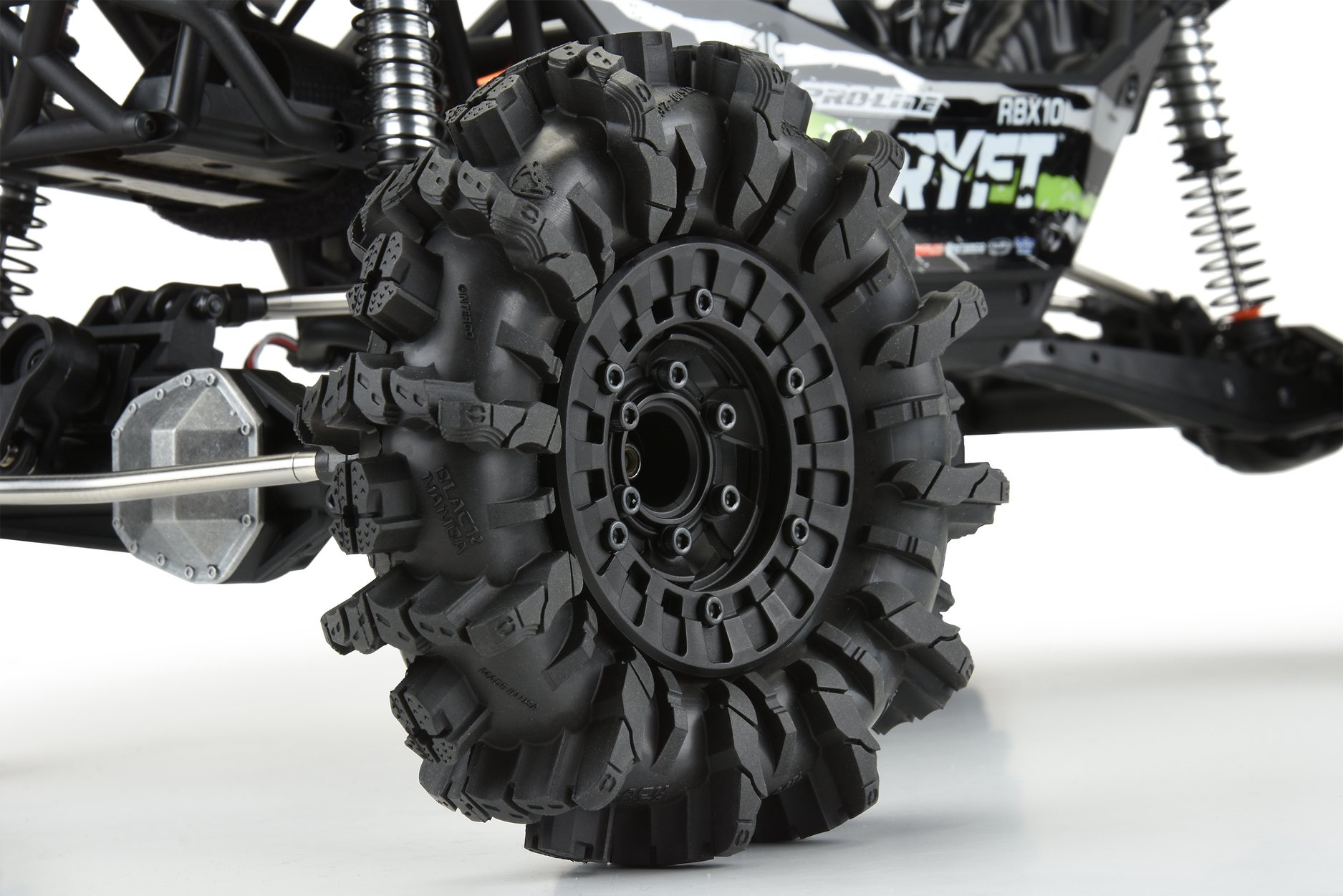 Pro-Line’s officially licensed Interco Black Mamba tires feature a directional tread pattern just like the full-size tires and are just as tough and aggressive as the real thing. Every detail is captured including the lettering on the tire carcass and the multi-stepped tread. Made from Pro-Line’s legendary M2 compound for maximum mud flinging traction from the start.