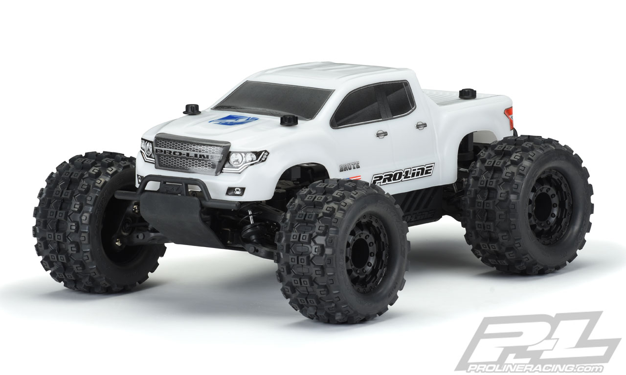 The Pro-Line Pre-Cut Brute Bash Armor body for the PRO-MT 4×4 & Stampede 4×4 may not seem all that different from the other bodies shown here, but it is. The pre-cut Brute Armor is the ultimate bash body which features Pro-Line’s Bash Armor material. If you are like us, you want a dependable high strength body you can count on for your truck. The Brute Bash Armor White Body has been developed from the ground up to be the toughest body Pro-Line has ever produced. The all-new Bash Armor material is twice as thick as regular 1/10 truck bodies and is ultra-flexible to reduce the chance of cracking and shattering. Unlike clear polycarbonate, the Bash Armor material is White and is not paintable, so Pro-Line includes detailed decal sheets to complete the look. The Brute is Pro-Line’s take on a modern truck and features a bold grill with eye-pleasing body lines sure to turn heads at your local bash spot.