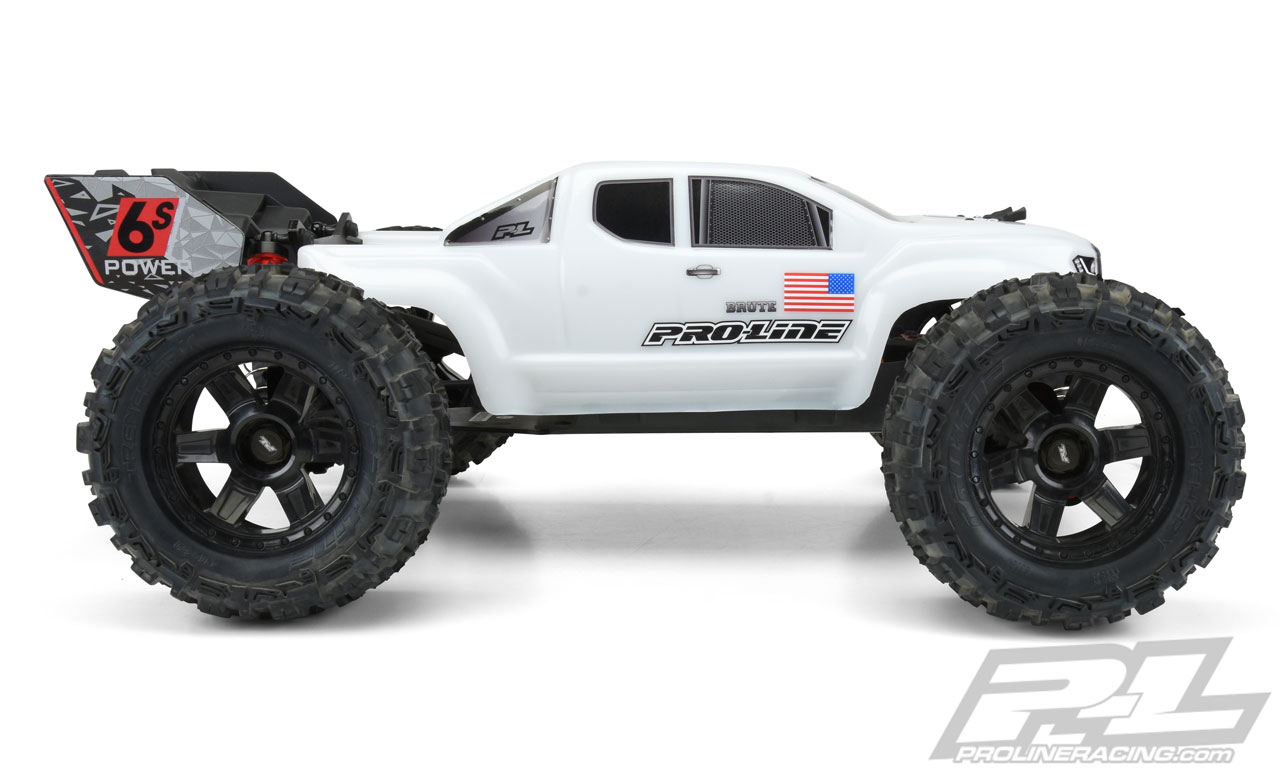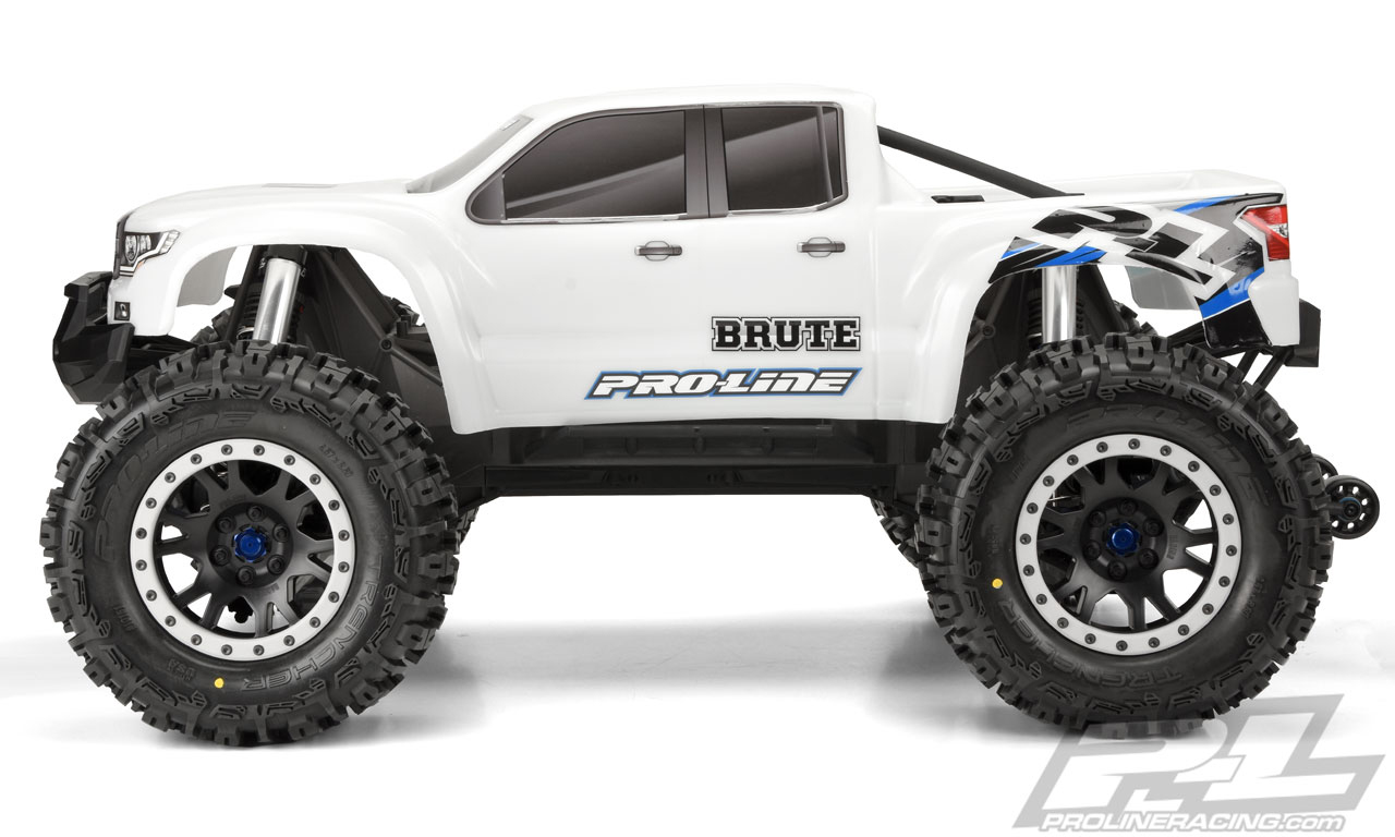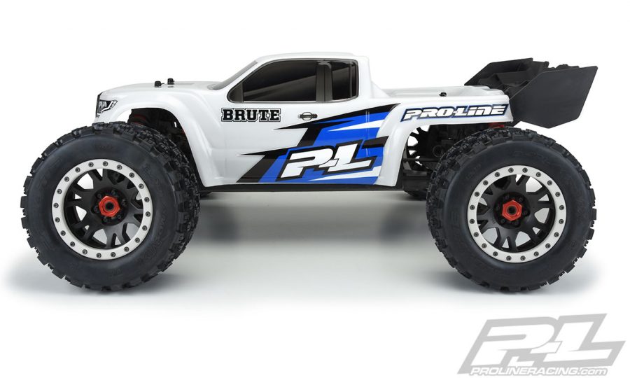 If severe bashing is what you are all about then the bodies from Pro-Line molded from their Bash Armor material is what you need. The Bash Armor material was specially developed by Pro-Line to give its bodies dependable high strength. It is twice as thick as regular 1/10-scale bodies and is ultra-flexible to minimize the chance of shattering or cracking. The Bash Armor material comes in white so you do not need to paint it and it is pre-cut. Just add the stickers from the included sheet and your truck is ready for some serious action. The Pre-Cut Brute Bash Armor white body highlighted here is molded with modern features and is intended for 1/10-scale size monster trucks.