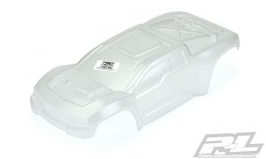 This is a clear version of the Brute body that is molded in Pro-Lines crystal clear polycarbonate and comes pre-cut to fit the unique shape of the Traxxas E-Revo 2.0 chassis. The designers specifically made this body to work with the inner Traxxas cage, latch system and roof skid plate while allowing you to paint it exactly as you see fit. The Brute is Pro-Line’s take on a more modern looking truck with bold front end and angular body lines.