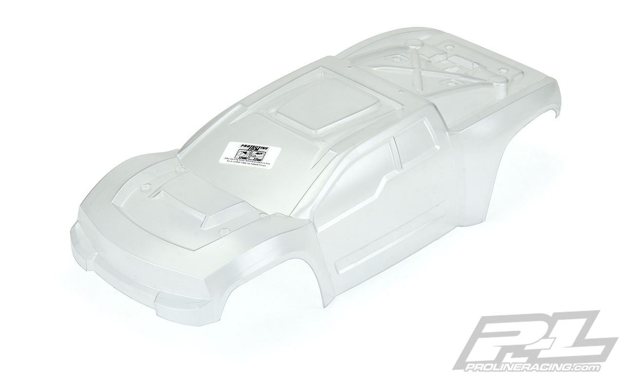 Owners of Large Scale trucks love to drive them to the extreme and it only made sense for Pro-Line to offer its Pre-Cut Brute Bash Armor body for both the Kraton 8S and X-Maxx monster trucks. The Bash Armor material is something special created by the gang at Pro-Line. It is made to withstand extreme bashing thanks to the extra thickness of the material and incredible flexibility. This helps to prevent the body from shattering or cracking. These bodies are not paintable, but come in white and include detail sticker sheets to help complete the cool MT look.