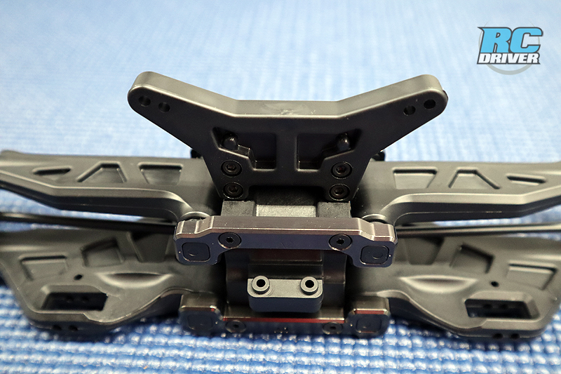 The front shock tower is installed next. Even though its composite plastice this tower has a very solid feel.