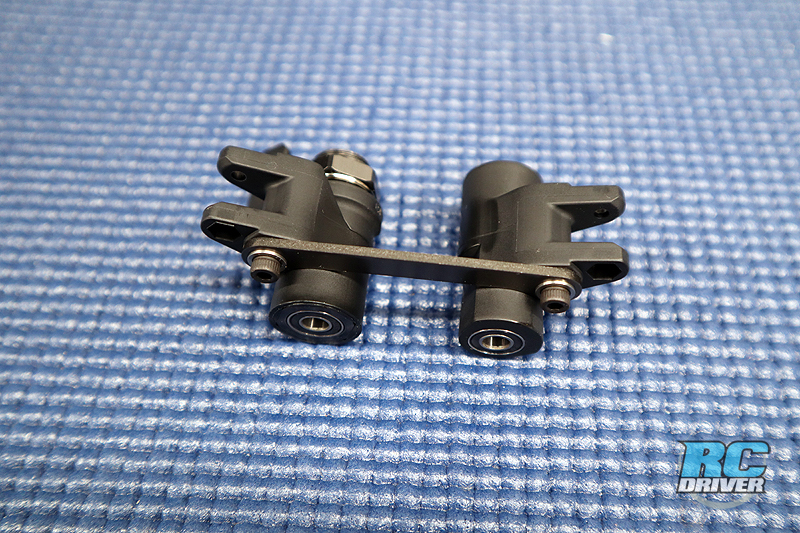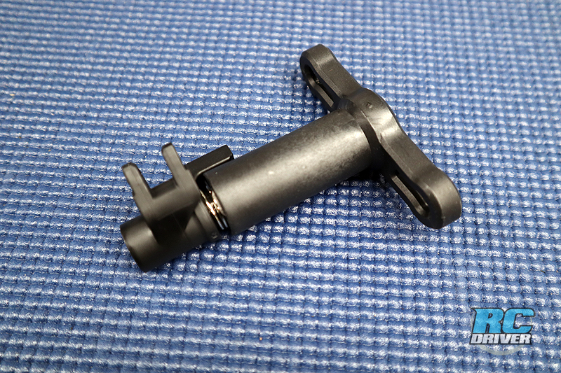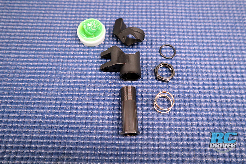 Here is a look at the revised steering crank composite components and how the servo saver will be assembled. We like to put a very light coating of grease inbetween the two composite crank parts so when it does need to move, it can do so without binding.