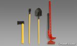 There is a well detailed high lift jack in red, pry bar with yellow handle, a yellow handled pointed digging shovel and yellow handled splitting maul axe. As expected, each is made from injection-molded plastic and hand painted for great detail.