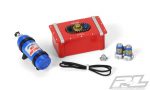 Still looking for that something special to standout on the trail? Assortment #8 has a few items that will be welcomed additions to nearly any rig. There is a red with silver race style fuel cell, blue “Mr. Big Shot” nitro bottle with mounting bracket and PL emblem, a pair of fuel pumps, silver fuel pressure regulator and bulk flexible fuel line in black so you can plumb up your rig your liking.