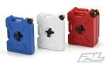 with these Scale Modular Fuel Packs. This set include 2 red fuel cans, 1 blue can that would be used to carry kerosene and 1 white can that would be used for water. To keep these cans safe and secure a dual can mounting rack with hardware and a pair of single mounts for bolting these to your Lexan or hard plastic body come standard.