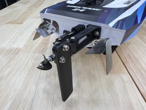 ProBoat gave the Sonicwake 24 a solid mix of metal and composite running gear for strength and efficiency. The metal trim tabs and turn fins are a single-piece design, while the rudder, rudder bracket, and strut assembly are made from durable composite materials. The rudder’s breakaway feature prevents serious damage if it hits an obstacle, a thoughtful addition for pond running.