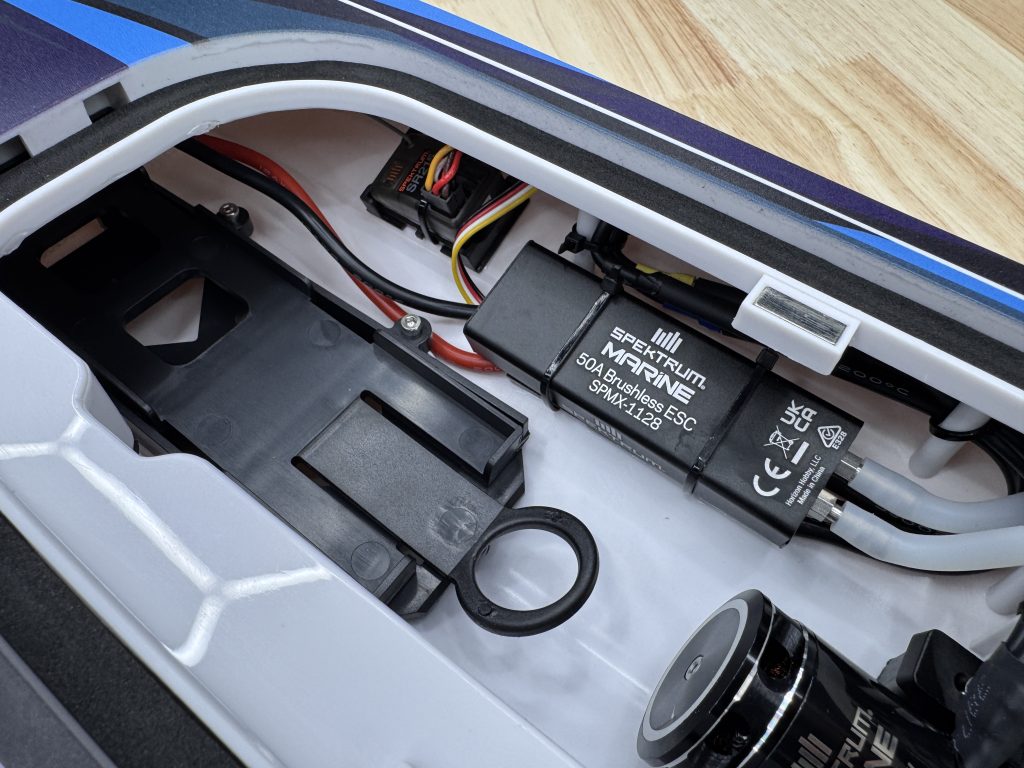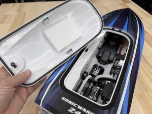 One of the boat’s standout features is its self-righting system, an essential for new RC boaters. Two water intake holes flood an internal chamber when the boat flips, rolling it upright without any manual intervention. Once moving again, the water drains out the stern, getting you back to full speed in seconds. This makes the Sonicwake 24 especially appealing for small bodies of water where recovery can be tricky.
