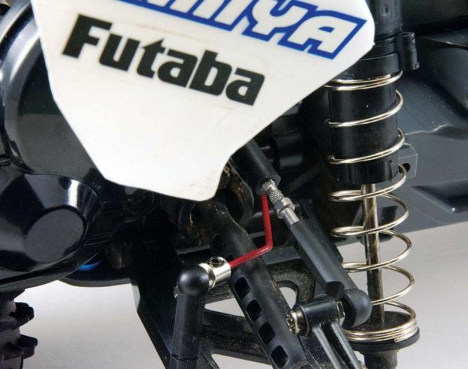 Tamiya is great for designing all sorts of interesting RC vehicles and keeping every format of our hobby fresh and interesting. The DT03 chassis is more geared for beginners in stock form, the cost is many design cues had durability in mind over all out performance. This doesn’t mean that the DT03 can’t become a high performance vehicle, and thankfully Tamiya has a whole lineup of functional hop-ups that are geared for improving the buggy. I reviewed the Neo Fighter version of this chassis (November ‘14 RC Driver), and found it to be an excellent entry level buggy kit. However, myself being a more experienced driver I was hoping for some more ways to tune and setup the vehicle for better off-road performance. I set off looking for the Tamiya upgrades for the DT03 chassis and got to work, my goal of making this more of a buggy to mess around with at the track, and even be competitive for sportsman level racing.