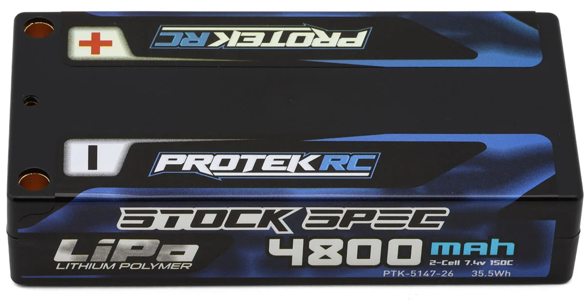 The PTK-5147-26 ProTek RC 2S 150C 4800mAh liPo “Stock Spec” shorty pack is ideal for 2wd and 4wd stock racing applications. The compact low-profile, lightweight design features a strong punch and consistent voltage. The advanced cell chemistry reduces heat to maximize efficiency for longer, cooler runs. For a detailed look at the new ProTek RC 4800mAh shorty lipo, which retails for just $59.99, click the link here: https://www.amainhobbies.com/protek-rc-2s-150c-low-ir-sig-stock-spec-lcg-shorty-lipo-battery-ptk-5147-26/p1674360