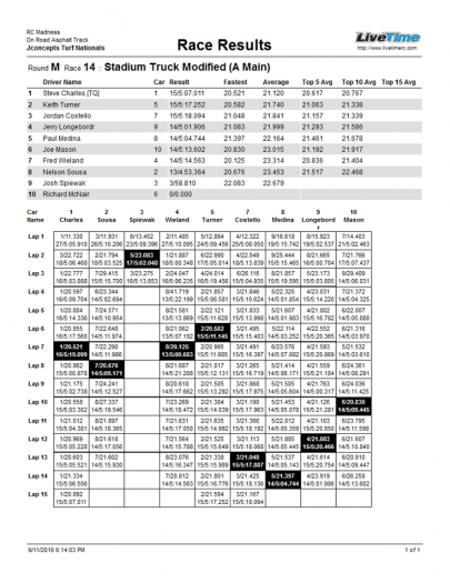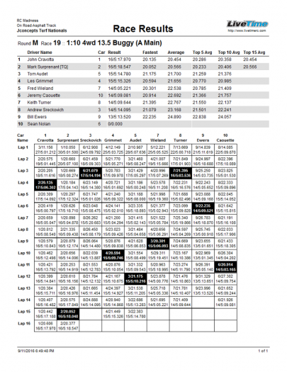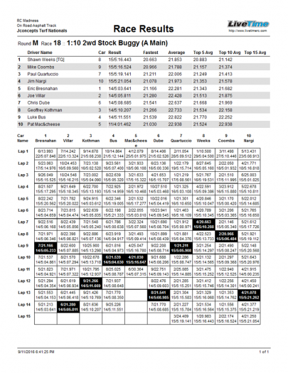 Mains ran into Sunday evening without a hitch with some phenomenal racing. Here are the A-Main results for all classes.