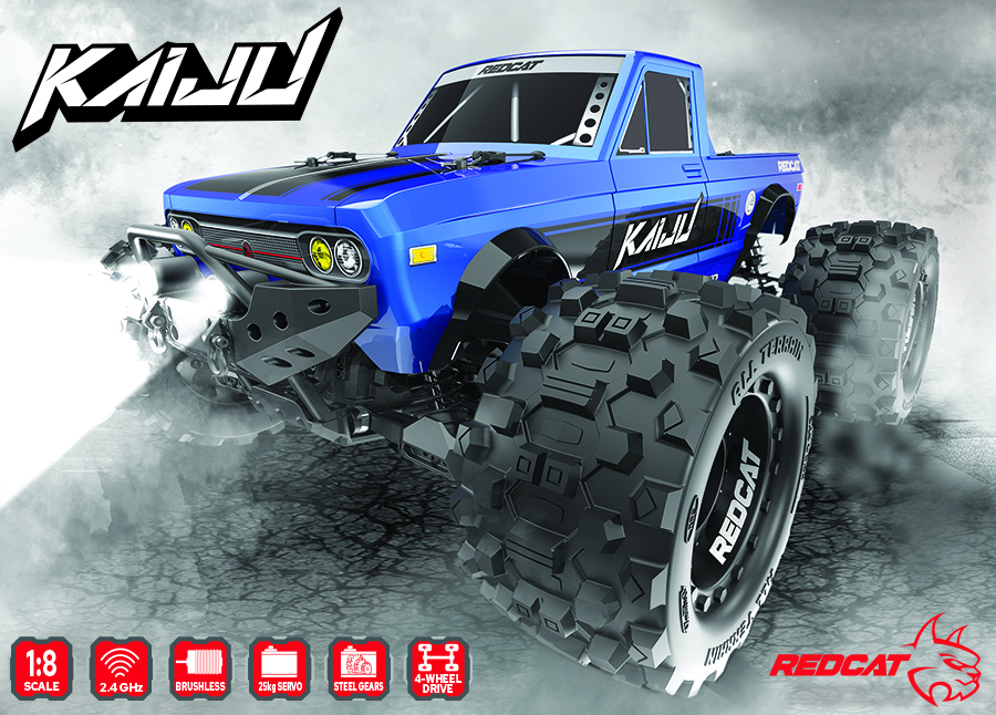 The newest member to the Redcat arsenal of vehicles has just been announced…here is the Redcat Kaiju1:8 RTR monster truck. It features a 6S ready ESC and will accept single or double LIPO batteries.