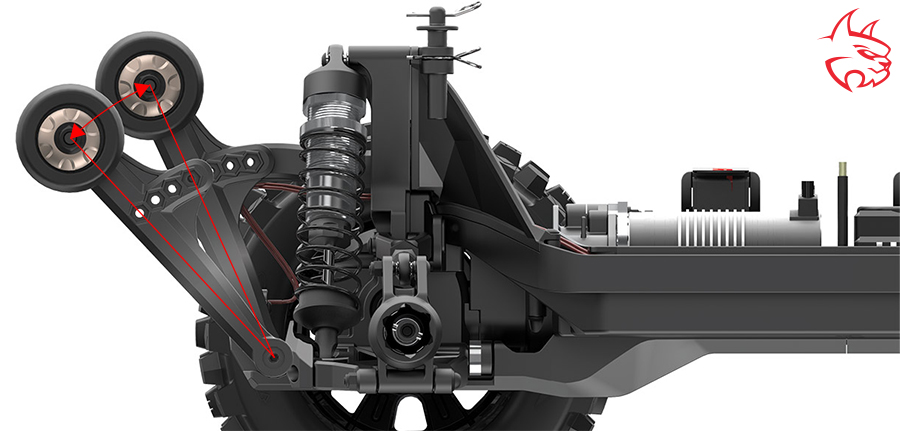 Hobbywing’s powerful 150A Brushless ESC and 4-pole 4268 2100Kv brushless motor provide power to the Kaiju. This 6S power system is both waterproof and dustproof, and features low voltage cutoff, as well as overheating protection.