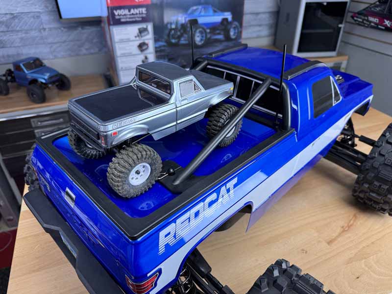 Last week Redcat Racing released the small-scale Ascent 18 crawler. This week they go to the other end of the spectrum; big scale. Meet the new Radcat Racing Vigilante! It’s a 1/5-scale off-road electric ready to run and yes 8S brushless powered. Redcat has had some large scale RC’s before, but this one fits nicely into the 1/5 basher truck category that attracts the big air enthusiasts. We’re going to keep this post short and sweet, it’s a photo gallery as we unboxed the truck and took a close look at it and it’s features. If you want to see the full run down, head over to our Youtube channel for more details! CLICK HERE TO WATCH ON YOUTUBE NOW