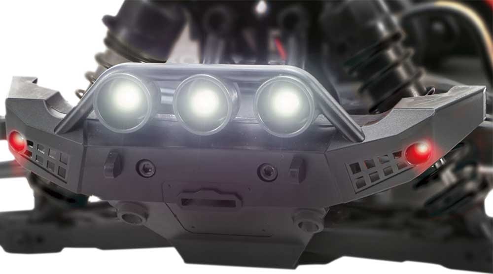 If you think you’ve experienced the ultimate in 1:10 scale monster truck excitement, think again! The RC-MT10E is loaded with crazy power and awesome handling! Not only is the RC-MT10E super exciting to drive but it is also extremely durable with its reinforced differentials, hardened steel driveshafts, high quality ball bearings throughout, durable long travel suspension, and offroad front bumper with working LEDs. The RC-MT10E also offers multiple levels of adjustability for suspension tuning.