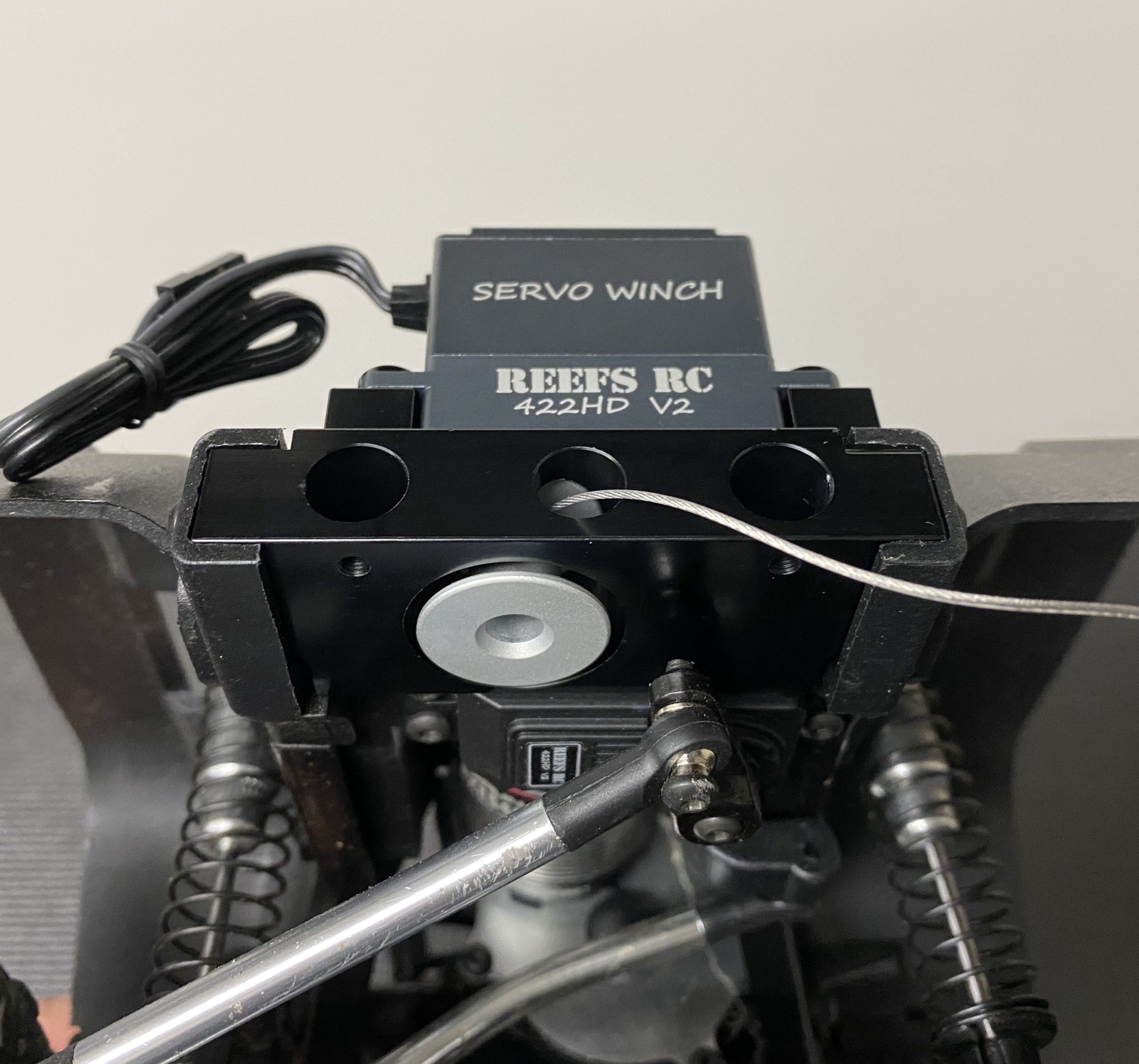 Here is the latest release from Reef’s RC, the Gen8 winch bumper mount. It is nicely CNC machined from 7075 aluminum for exceptional durability and anodized black for a professional finish. The holes are pre-tapped to make installs a breeze onto the Redcat Gen8 trail truck. Once installed, your winch servo will be solidly mounted and it only adds 2-ounces of weight to your rig.