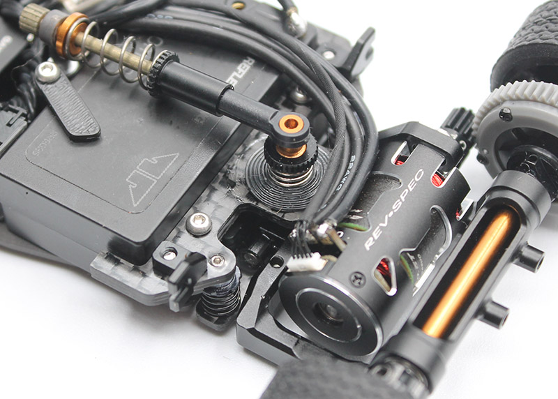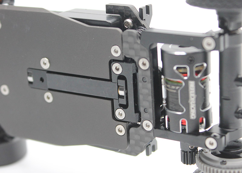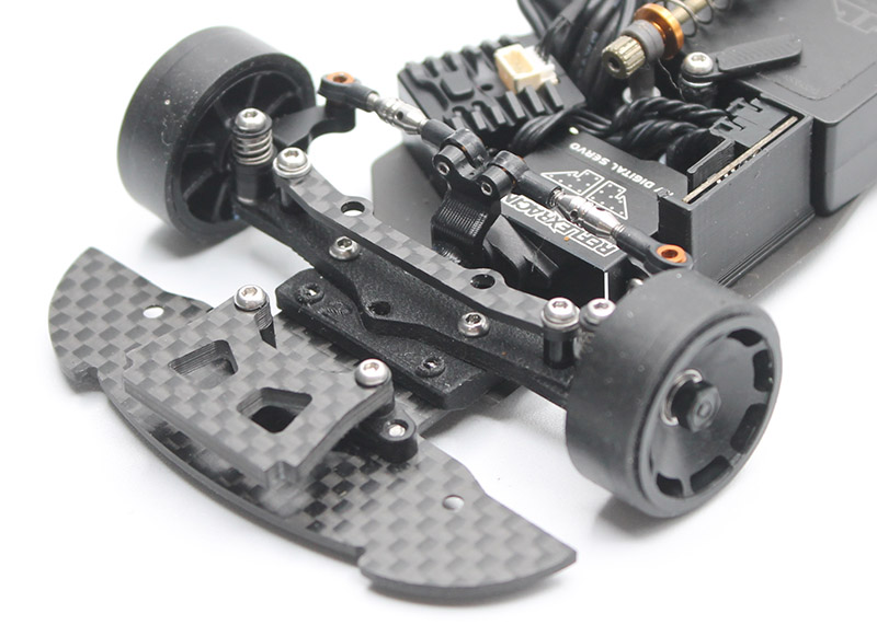 - Highly adjustable sliding king pin front end featuring aluminum knuckles with Delrin sleeves for precision and smoothness, paired with an aluminum bulkhead and carbon fiber lower arm for lightweight strength and optimal rigidity.