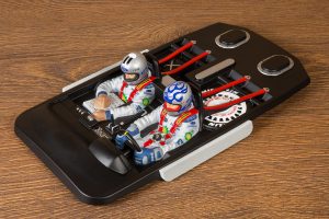 The driver helmets were quite tricky as François Duval’s is a sparkly silver with blue flame graphics. According to Adrian, the flames aren’t quite right, yet look okay. To achieve the sparkle effect, he used Tamiya X-11 Chrome Silver which was airbrushed on and then clear coated with X-22 Clear. Stephane Prevot’s helmet is non-metallic LP-11 Silver and has Sylvester, the cartoon cat on it in a kind of “hanging on for dear life” pose. Adrian was