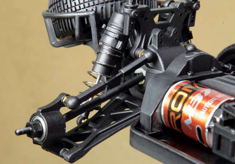 An efficient dual bellcrank style system helps take care of the steering duties on the DB4.18 and DT4.18. The center link operates rather freely without much slop, helping both vehicles track straight and narrow. A spring-style servo saver protects the gears of the servo and while a bit soft this makes it ideal for newcomers. However, it can easily be removed and stretched to tighten it up for more experienced hobbyists.