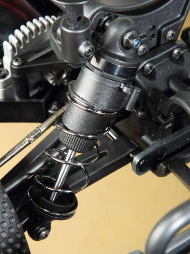 The ProSC 4×4 uses a XP 1903MG servo for steering duties. It’s a good servo for RTR purposes, and has plenty of torque to swing the dual bellcrank steering rack back and forth. It’s also bearing supported, something you don’t find in all RTR SC trucks. A servo- mounted servo saver is included as are adjustable steel turnbuckles for tuning.