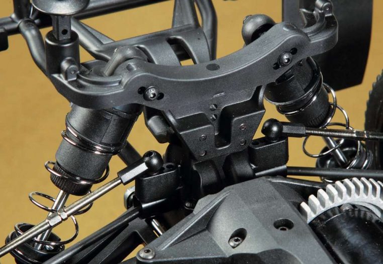 The suspension carries over from the ProLite 4×4 as well. However, the ProSC gets a boost to the next level with the addition of 16mm big bore shocks. These heavy-duty dampers add a plush feel through the rough stuff and landing off of jumps. The suspension arms have just a bit of flex to help absorb impacts and there are multiple tuning holes in them (as well as the towers) to get the truck dialed in to track conditions. For those of you that really want to get crazy with tuning, the arm mounts feature inserts that allow you to adjust pickup and antisquat. One thing the ProSC lacks is front and rear anti-roll bars, but the suspension arms have the link mounts molded into them if you choose to go this route.