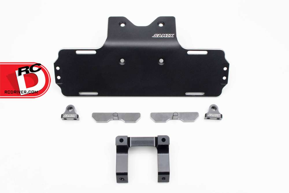 I received four parts from SAMIX RC for inspection; their Aluminum Front Cross Brace, Forward Battery Tray Kit, 8-Degree Hub Carriers and 8-Degree High Clearance Steering Knuckles. Let me detail each for you.