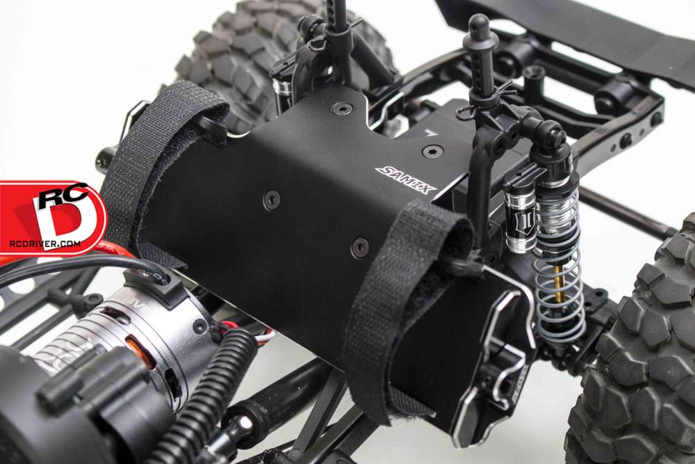 The final goodie I received from SAMIX was their Forward Battery Tray Kit. This kit moved the battery toward the front of the chassis right behind the front wheels for excellent weight distribution and to help the front tires dig in and improve climbing. Additionally, tray just fit in the middle of the front shock plate and can make front shock plate more stiffener. Because of the location of the battery tray I had to locate my receiver box to the back of the chassis, a fairly simple task.