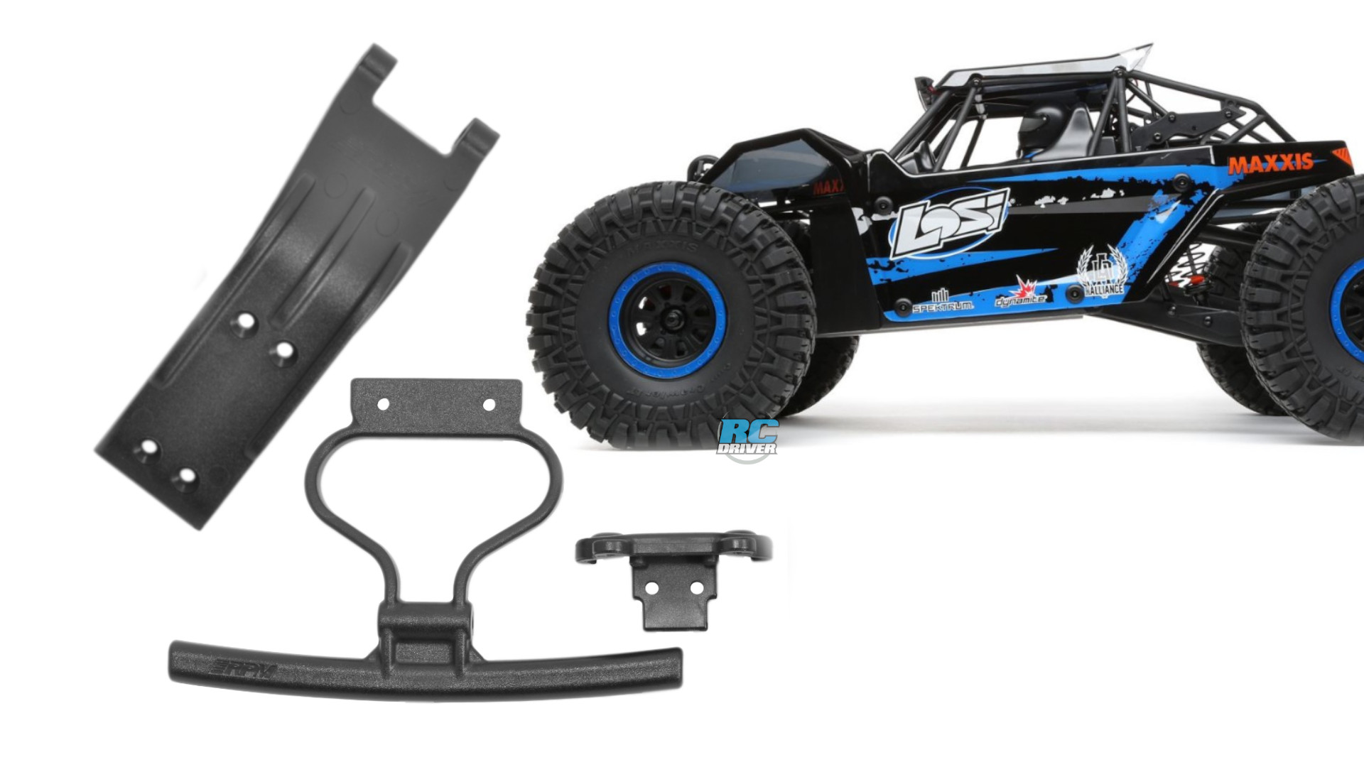 RPM announces the release of its front bumper & skid plate for the Losi Rock Rey and it is more than just a simple skid plate revamp. RPM moved the entire skid plate from between the chassis plate and differential to below the aluminum chassis plate. This move solved a couple of problems. First, the aluminum chassis plate now has some serious PRM skid protection where it had none before. Next, and more importantly, it allowed RPM’s designers the freedom to create a flex zone on the skid plate that would allow more movement of the bumper in impact situations, ultimately saving you from costly internal repairs.