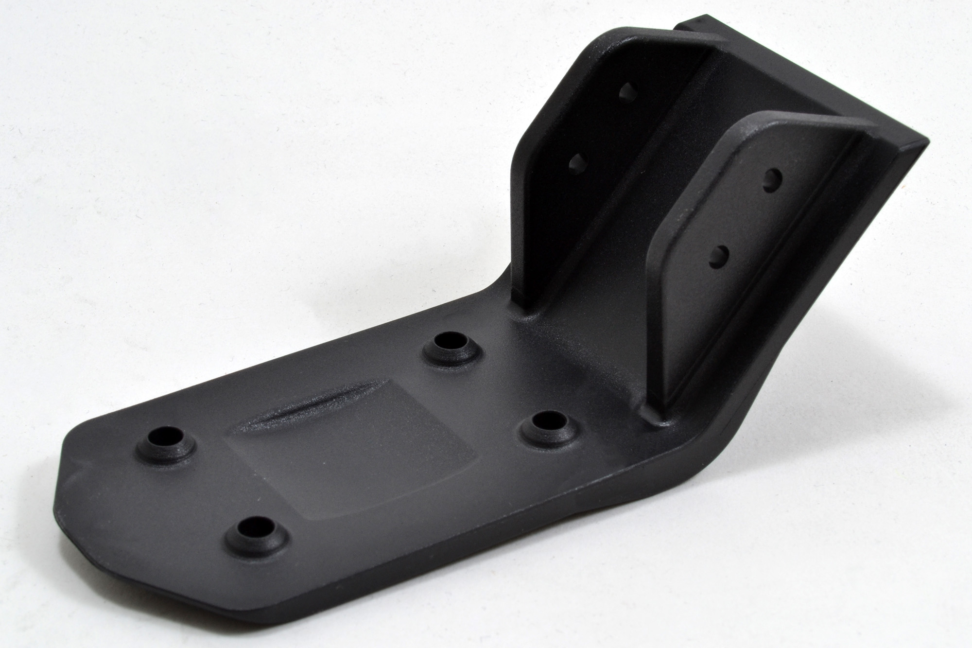 Oversized Wing Mounts: RPM Wing Mounts have more material between the mounting points of the wing and the chassis mounts, equating to a tougher and more rigid mount. They also added in a strengthening rib that extends rearwards, creating a T-shape for additional durability.- Included Rear Skid Plate: In order to make the toughest wing mounts, RPM had to devise a new structure to create a triangulated base of support. Their new rear skid plate incorporates mounting points for a vertical brace. The brace spans the distance between the wing mounts and the skid plate, creating an incredibly tough system. As an added bonus, the skid plate helps protect the rear end of that expensive chassis.