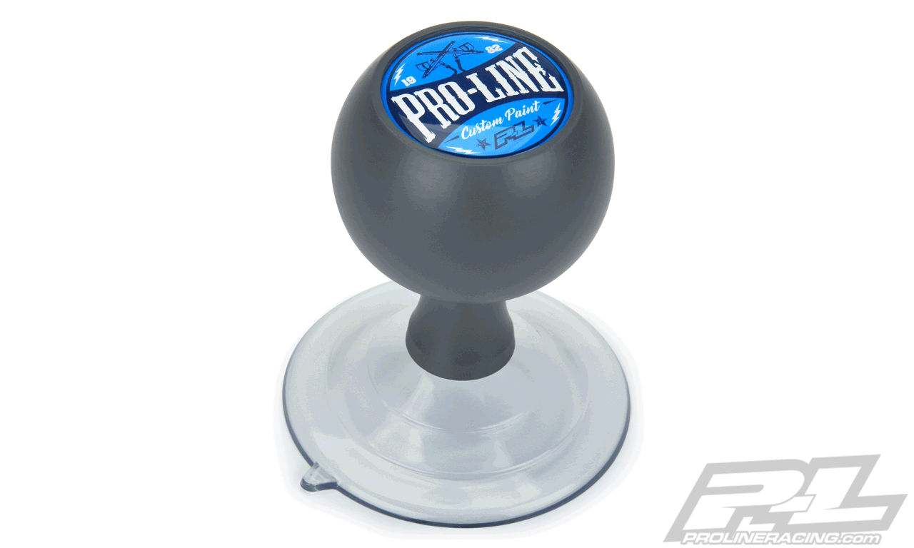 The Pro-Line Body Grip Tool (#6349-00) is a super useful device made specifically for painting bodies. The suction cup bottom of the Body Grip Tool securely attaches to the body and allows you to hold onto the tool instead of the body and will keep you from getting your fingerprints in the wet paint and ruining the paint job.
