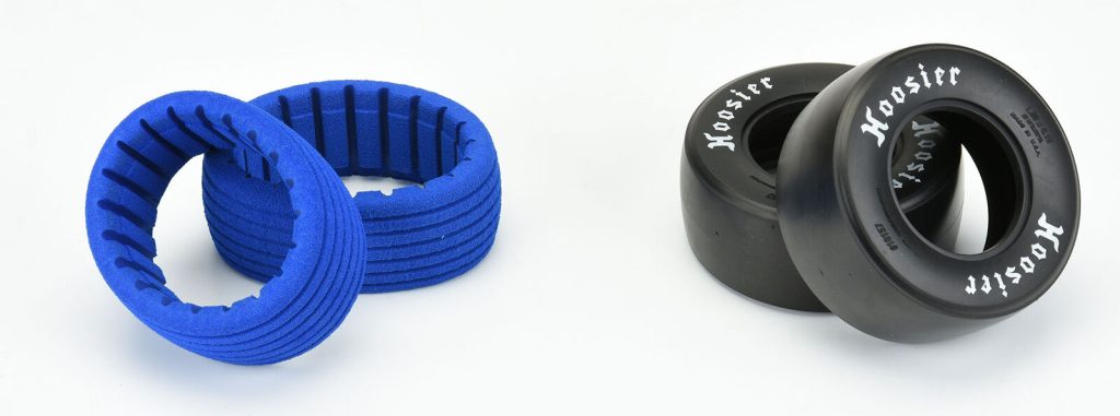 The perfect complement to the Hoosier Drag front tires are these Hoosier Drag Slick rear drag racing tires. Like the smaller front versions, these Hoosier Drag slicks are fully licensed and come with the iconic bright white Hoosier logo on the sidewalls. You gain the benefit of super scale looking drag tires along with getting maximum grip. These drag slicks are designed to work with Pro-Line 2.2/3.0 wheels and include closed cell foam inserts.