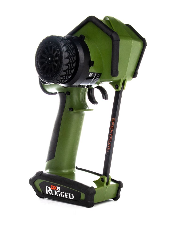 Your vehicles are extremely durable, why not your transmitter? The Spektrum DX5 Rugged 5-channel surface transmitter redefines radio control with a level of durability to match the tough conditions off-roaders, bashers and boaters encounter constantly. Spektrum started with a chassis based on the superb Spektrum ergonomic design found on the popular DX5C and competition favorite DX5 Pro. From there, they integrated cordless power tool feature ideas for the die-hard punishment those products endure. The result is a class-leading RC system with unmatched durability in addition to other innovative features that unite with a level of precision, versatility and convenience you won’t want to play without.