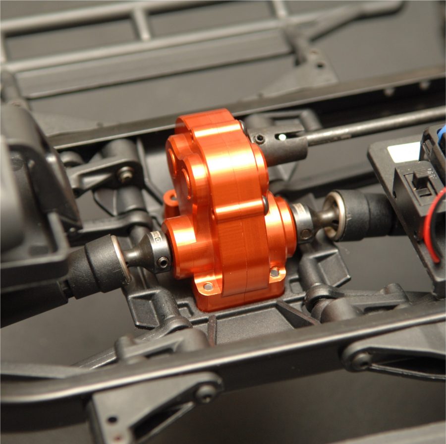 provide better and more precise alignment to the rear straight axle and the bearings for smooth running rear drive axle. Both the Transmission case and rear lock-outs are available in anodized Black, Gun Metal, Orange, and the rear lock-out is also available in natural silver to match existing silver components on the HPI Venture.