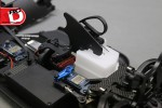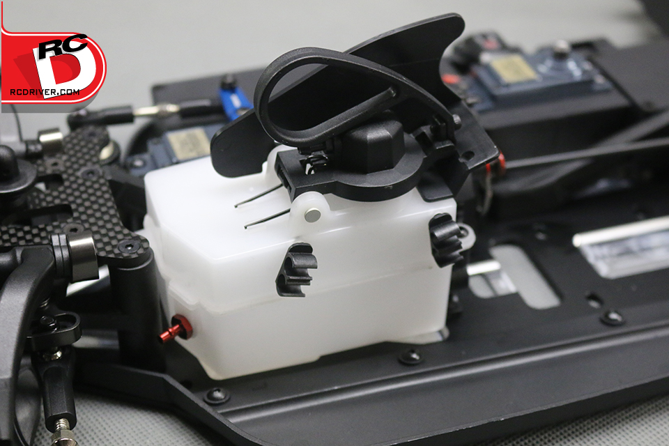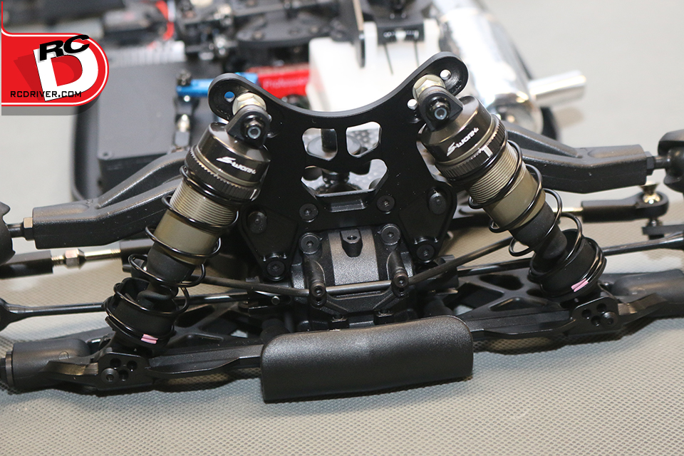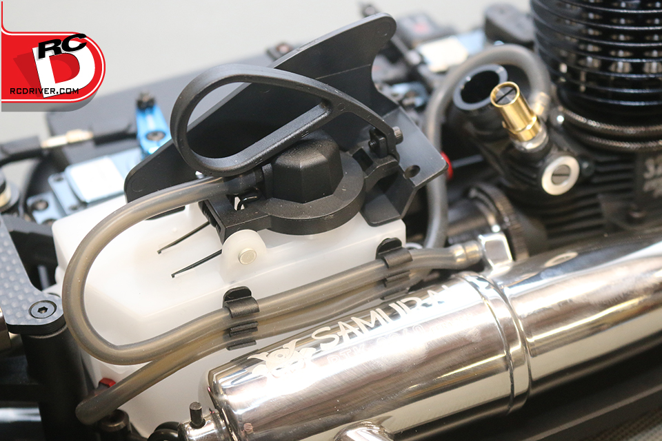 There is plenty to like on the SWorkz S350 EVO II Pro for the competition racer. Plenty of tuning adjustments, lots of quality parts and excellent design. Things that really stood out on the kit were the angled engine mounts, quality clutch set-up, the cool red coated brake plates, aluminum servo saver arm, aluminum pivot blocks and lightweight outdrives. Like most competition kits, you’ll need to supply the running gear. We turned to Amain.com for their Samurai engine and pipe and ProTek RC for the servos, switch, battery and receiver. The wheels and tires are AKA and the killer paint scheme was sprayed by Kustom RC Graphics.