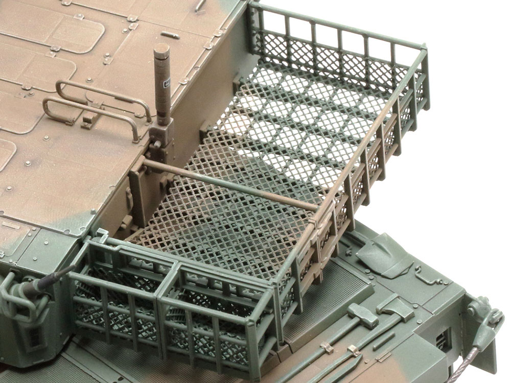 The detailed turret rear basket utilizes nylon mesh sheet to recreate the wire surfaces.