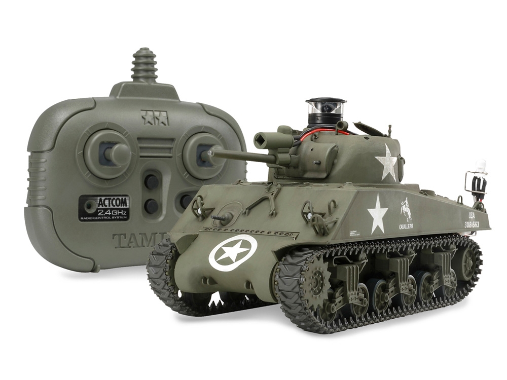 In regards to the M4A3 Sherman US Medium Tank and the JGSDF Type 10, you will see there are two versions of each tank. One comes furnished with the Tamiya Battle System and one does not. Common among all of the tanks being featured is their full range of radio control motion.