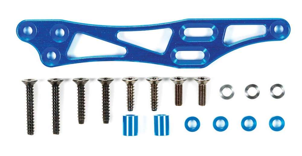 This Tamiya hop-up performs two helpful functions. Its rigid aluminum construction helps to protect the servo from impacts and gives you the option to mount the servo lower for more direct steering response. The part includes all the necessary mounting hardware like most of Tamiya’s option parts.