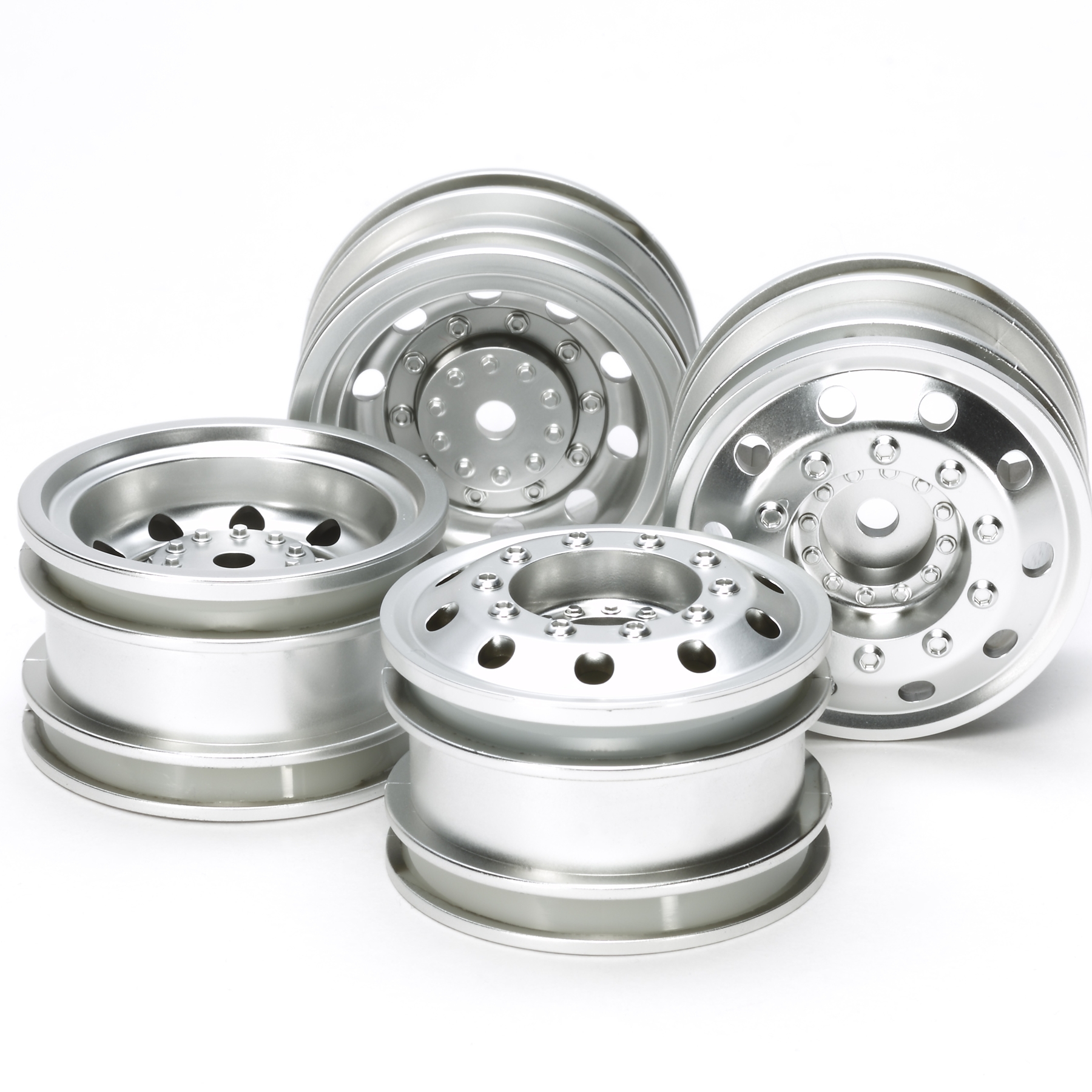 The Mercedes-Benz, the Team Hahn and the Team Reinert trucks all come with matte plated truck wheels while the Buggyra Fat Fox has black wheels. Tamiya offers each of those wheels as spare parts as well as a set of white truck wheels. This is a good option to know about if you decide to move away from the box are and create your own fantasy ETRC race team. Each of the wheels are sold in complete sets that include the two front and the two rear wheels.