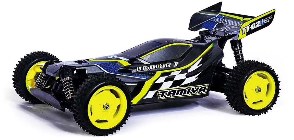 Now featuring a gunmetal-colored body, the Tamiya Plasma Edge II is back. It rolls on the familiar TT-02B chassis and can be modified with a large range of hop up parts.
