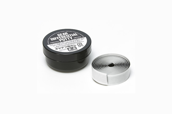 Another neat find on the Tamiya website, Gear differential putty. This is used to control the differential action of gear diff units used in RC cars that have sealed gear diff systems. When high viscosity oils are not enough to achieve the desired differential action, the use of putty can become quite handy. The material in this package comes in a roll which can be removed easily from the plastic case, cut into 3mm pieces with scissors and inserted into the differential. Gear differential putty (25g)