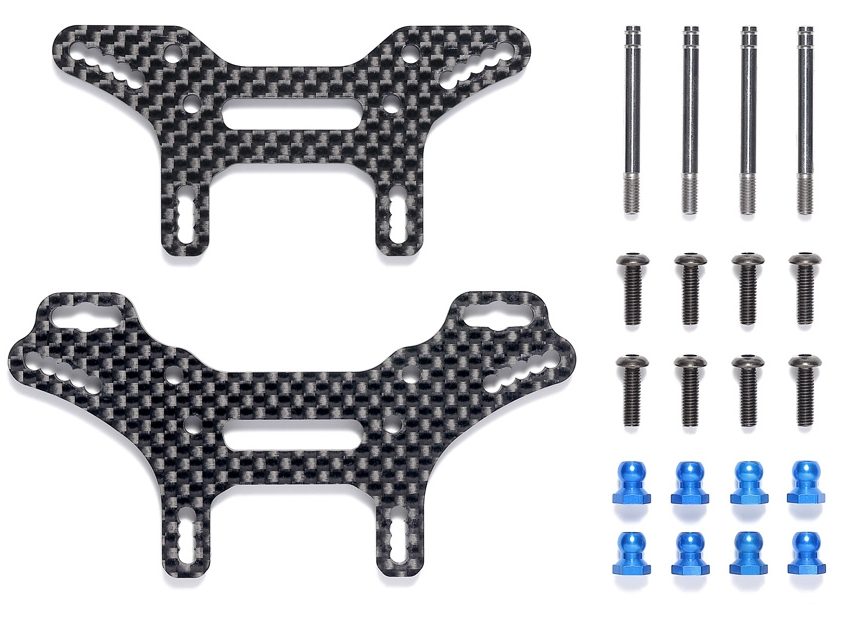 This Hop-Up Option is for use with the Tamiya XV-02 chassis and is mainly oriented for on-road performance. The lightweight, rigid 3.5mm thickness carbon fiber damper stays give more setup options compared to the standard plastic damper stays.