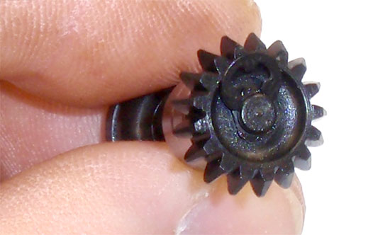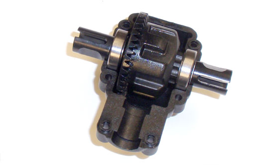 Apply some black grease to the sun gear on the center CVA assembly and set that in position. Screw to upper gearbox case into position. Now rotate the center CVA to check the friction level. If it spins smoothly, you’re in luck. If not, you’ll need to dissemble the gearbox and remove a shim from the differential (behind the bearings). You’ll need to experiment with the shimming here; remove one from the gear side to loosen the gear mesh (but still free up the movement); remove one from the opposite-gear-side to keep the mesh tight (but still free up movement).